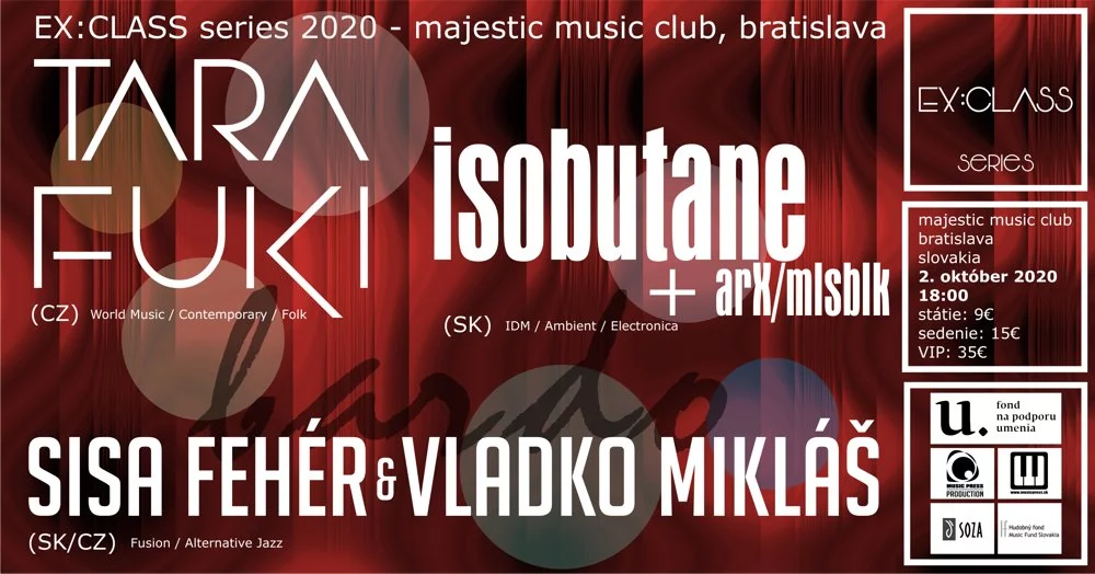Festival EX:CLASS pokračuje aj napriek neľahkej situácii. Sme nesmierne radi, že pozvanie na festival prijala Sisa Fehér a Vladko Mikláš s projektom BARDO a Isobutane + arX + mlsblk. Vystúpenie violončelového dua Tara Fuki takisto platí. Tieto tri hudobné projekty vystúpia na festivale EX:CLASS 2. októbra v bratislavskom MMC za sprísnených hygienických opatrení, a preto sa nemusíte báť o vašu bezpečnosť a zdravie.